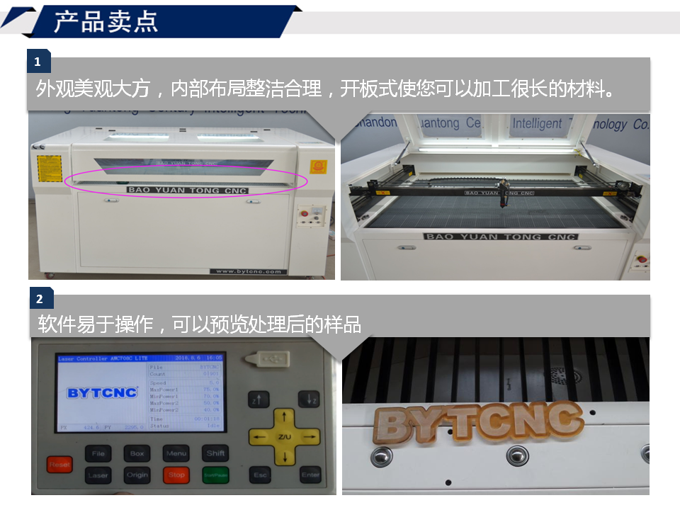 4.采用稳定高效的激光电源和大功率,小光斑,高响应的激光器,充分发挥了机器的潜能;